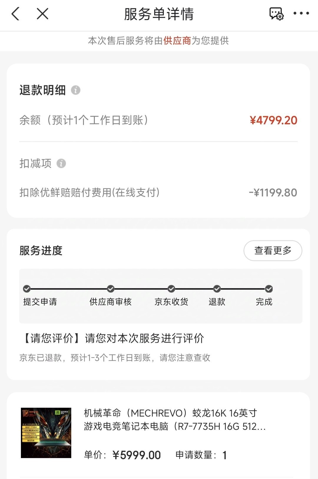 在跟jd客服說明情況並表明想要申請退款的之後(這時候我才知道三包政策是兩次維修不能用就可以申請)jd客服開始會告訴你說可能只能申請到六到七折的退款,但是過幾天再問他會說能申請到八折退款。我毫不猶豫選擇了退款並立刻開始打算自己裝機(因爲我並沒有太大的外帶需求)🤔