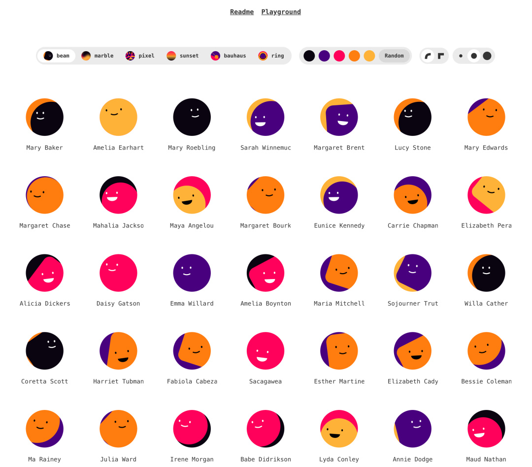 网址:https://boringavatars.com/playground