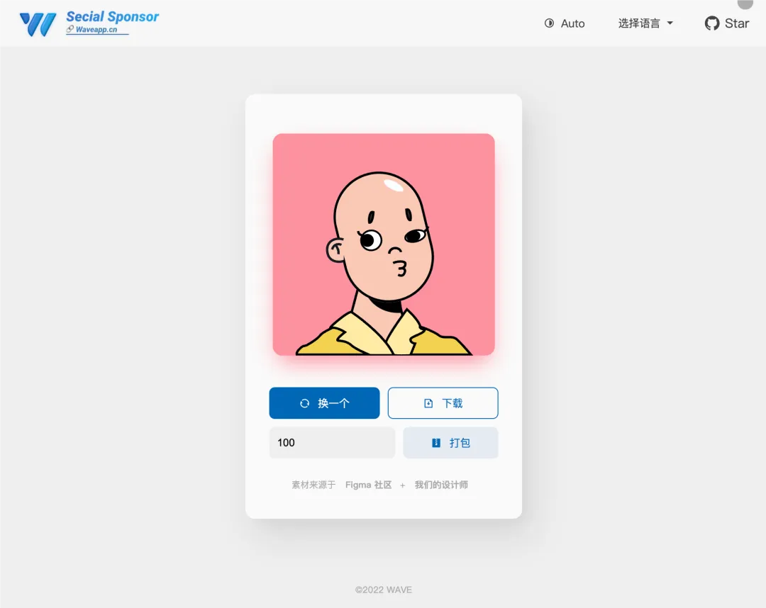 也可以批量打包下载头像,默认是 100 个头像,可以更改数量。