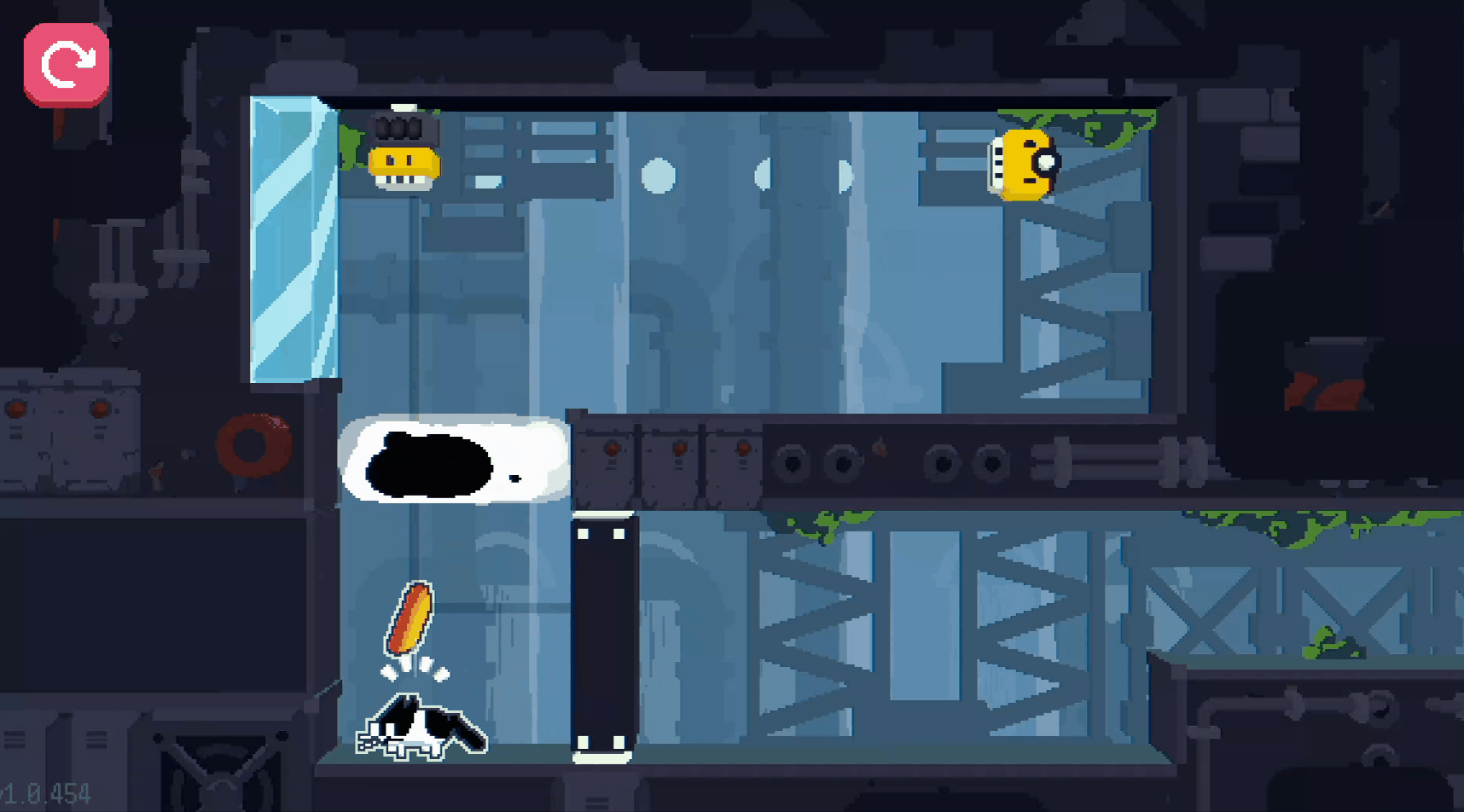 作为成熟的游戏类型,平台解谜其实已经很难再针对机关做推陈出新,故《CATO 黄油猫》在在经典机关元素(状态检测/延时开关、发射器、果冻和反重力等)外,主要从合体分体状态切换去做解谜路线的设计。
