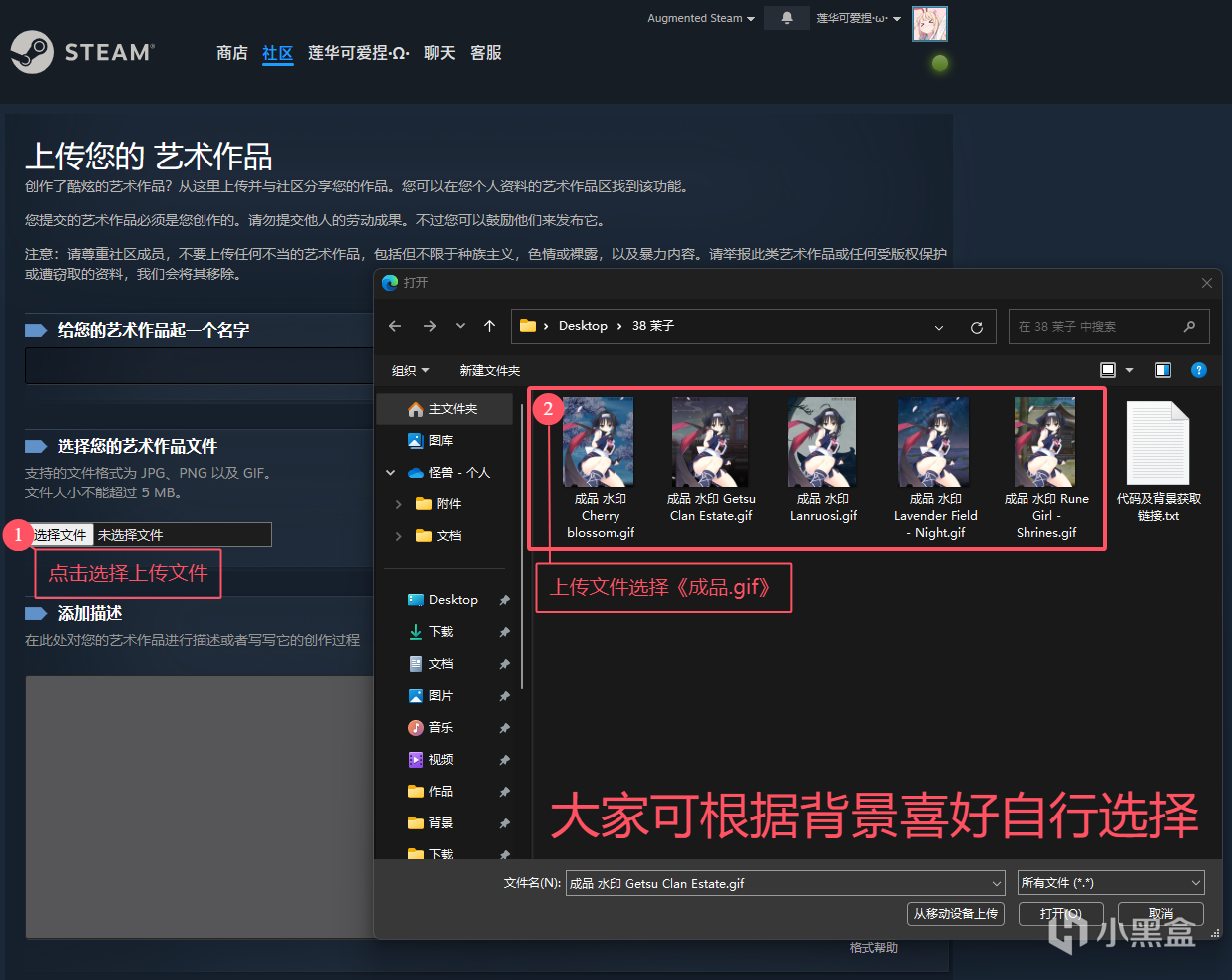 六、编辑steam个人资料,选择个人资料背景,更换我们之前购买的背景(切记选择原始大小),然后保存