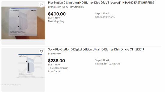 目前在購物網站eBay裏充斥着大量的高價PS5光驅,大部分PS5光驅的價格在100美元至200美元左右不等,其中一位黃牛甚至還賣到了400美元的高價,相當於一臺在eBay售賣的PS5《戰神:諸神黃昏》同捆主機價格的一半。除此之外,PS5光驅在國內的價格也出現了上漲的情況。