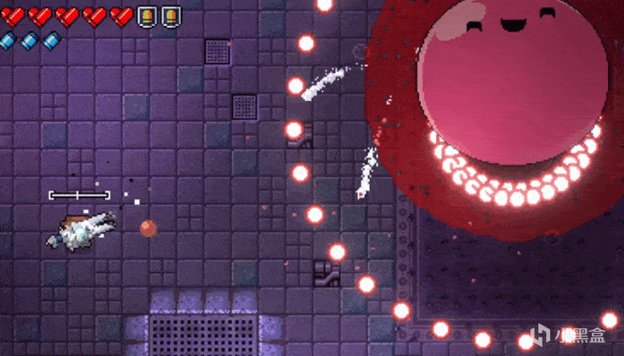 《挺进地牢》的远程敌人同样是如此:堆出一堆弹幕但是并不直接冲着人来的,其实是“偶数自击狙”,惩罚的是冲入怪堆的玩家,而如果能步步为营,其实相当于面对“自击狙”,闪避掉那些致命的伤害,还是可以很从容的破局。