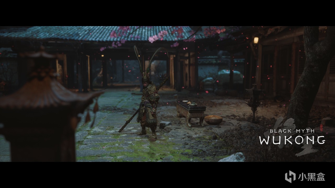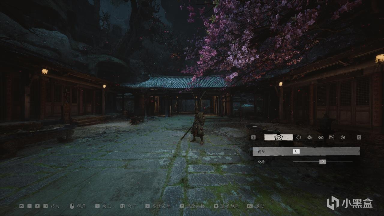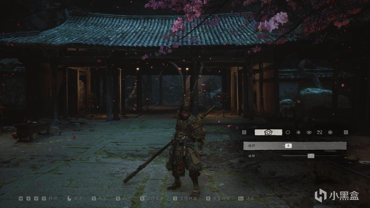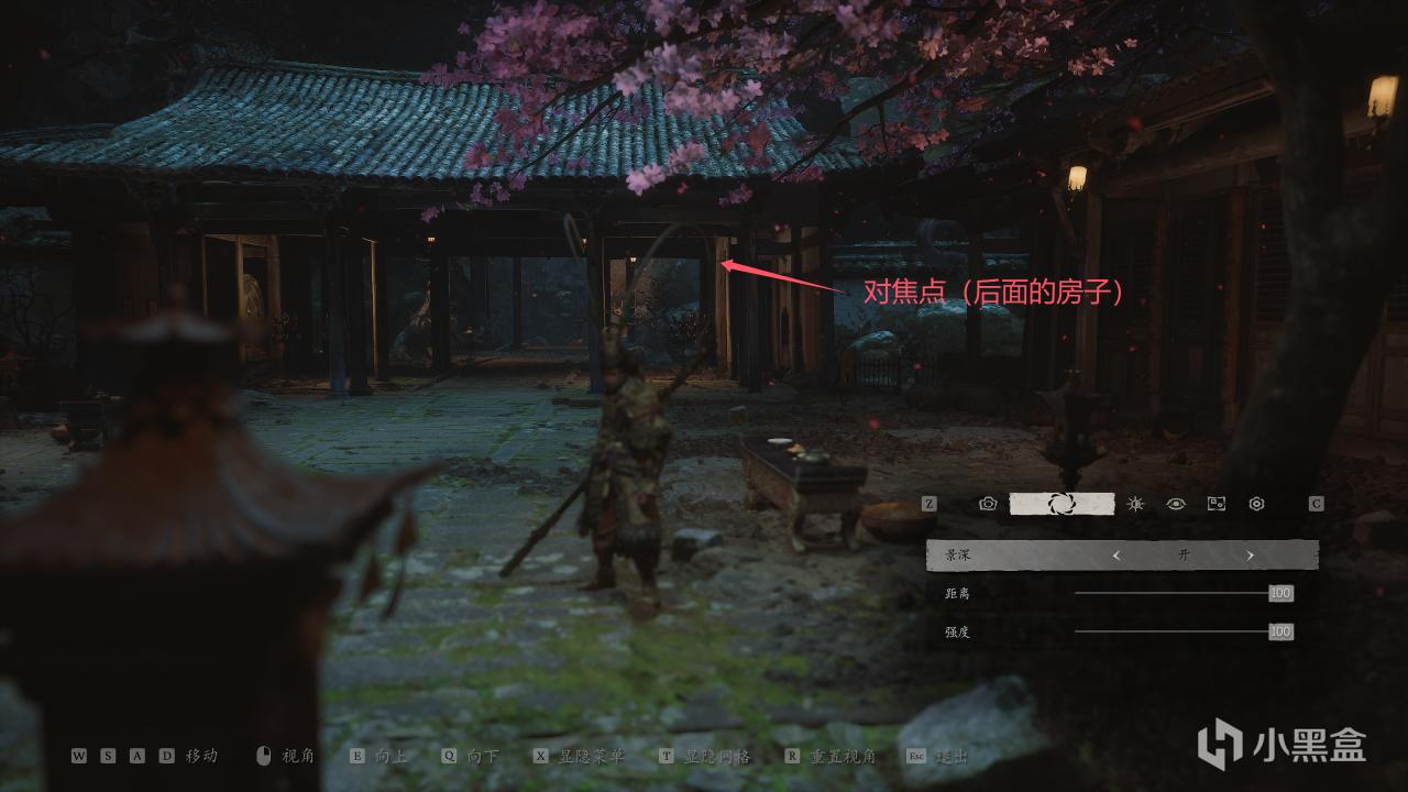 最後,我想說的是,雖然遊戲很好玩,畫面場景也很驚豔,但個人感覺拍照模式有點單一,對焦操作不夠自由,對焦點沒有UI提示。他不像地平線或者其他某些遊戲,在不改變畫面視角以及焦距的情況下,可以直接操作對焦點上下左右移動。而在《黑神話:悟空》中只能通過調整攝距、焦距和方向去對焦到同一焦平面內,這樣就會出現上如圖的情況,桃花和桌子都對上了,層次不夠分明,不想太清晰的物品也清晰的顯示了。