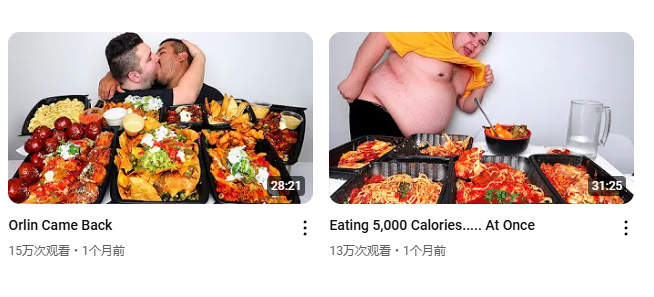 在他的頻道里不僅僅有喫播,引戰的視頻也不少,今天可以是跟素食主義者撕逼,明天也可以反過來刺激支持自己的粉絲,因爲他知道只要爭議不斷,流量就不會斷,慢慢地就連他的喫播視頻也開始向這個方向發展,他不再像以前那樣輕聲細語地慢慢喫,而是越來越狂躁,甚至會隔三岔五地大哭發脾氣。