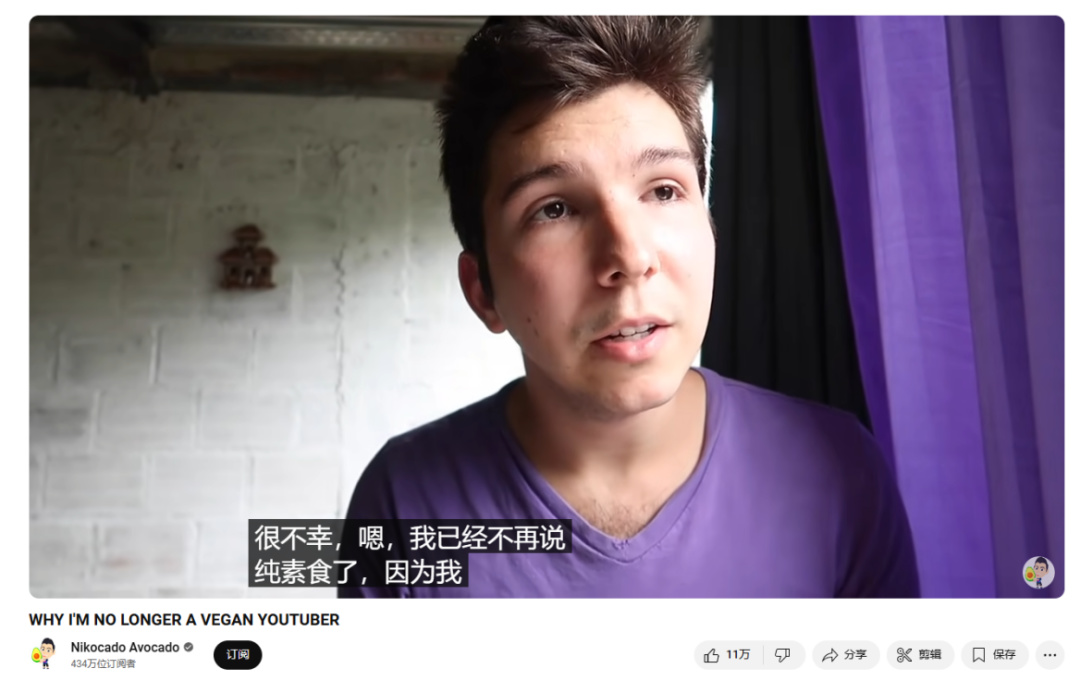 這樣的日子過了兩年,他的頻道依然沒有較大的起色,於是他打起了喫黑紅流量的注意,在2016年,他發佈了一段長達35分鐘的視頻,表示正式與素食主義者切割,很快這個視頻就成了素食主義者和正常人的撕逼戰場,這波操作下來也爲他吸引了大量的正常觀衆。