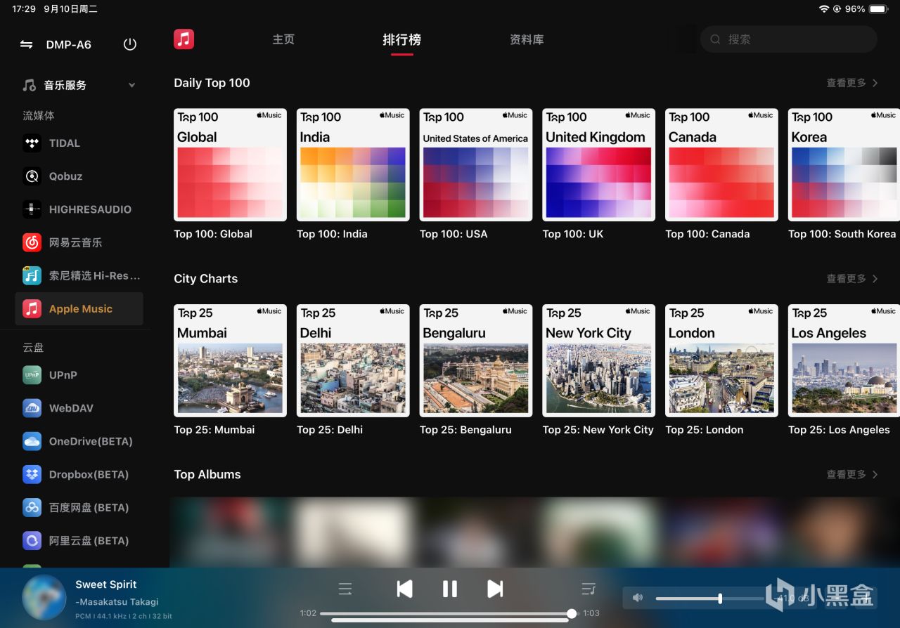 温馨提示:Apple Music音乐服务最高支持PCM 44.1KHz。