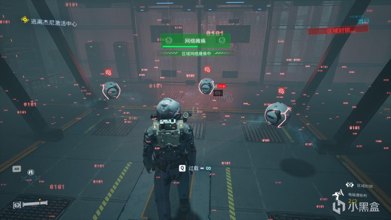 那如果有人要問,要是有數個安保機器人視線交叉進行防護,那該怎麼破解呢?這個問題也很好解決,我們可以使用“致盲”的病毒代碼讓機器人的視覺處理系統短暫出現問題,從而繞過這塊地區,不過需要注意的是,如果短時間內大量癱瘓機器人的攝像頭,那麼就有可能被總控摩爾所察覺你的位置而進行反入侵,由於機器人的報警機制是全圖聯動(很合理),因此千萬要注意節奏。此外,如果有兩個傑尼機器人視線交叉的情況下,我們的病毒代碼還可以小範圍內引爆,從而讓有視線交接的機器人全部暫時失去視覺!