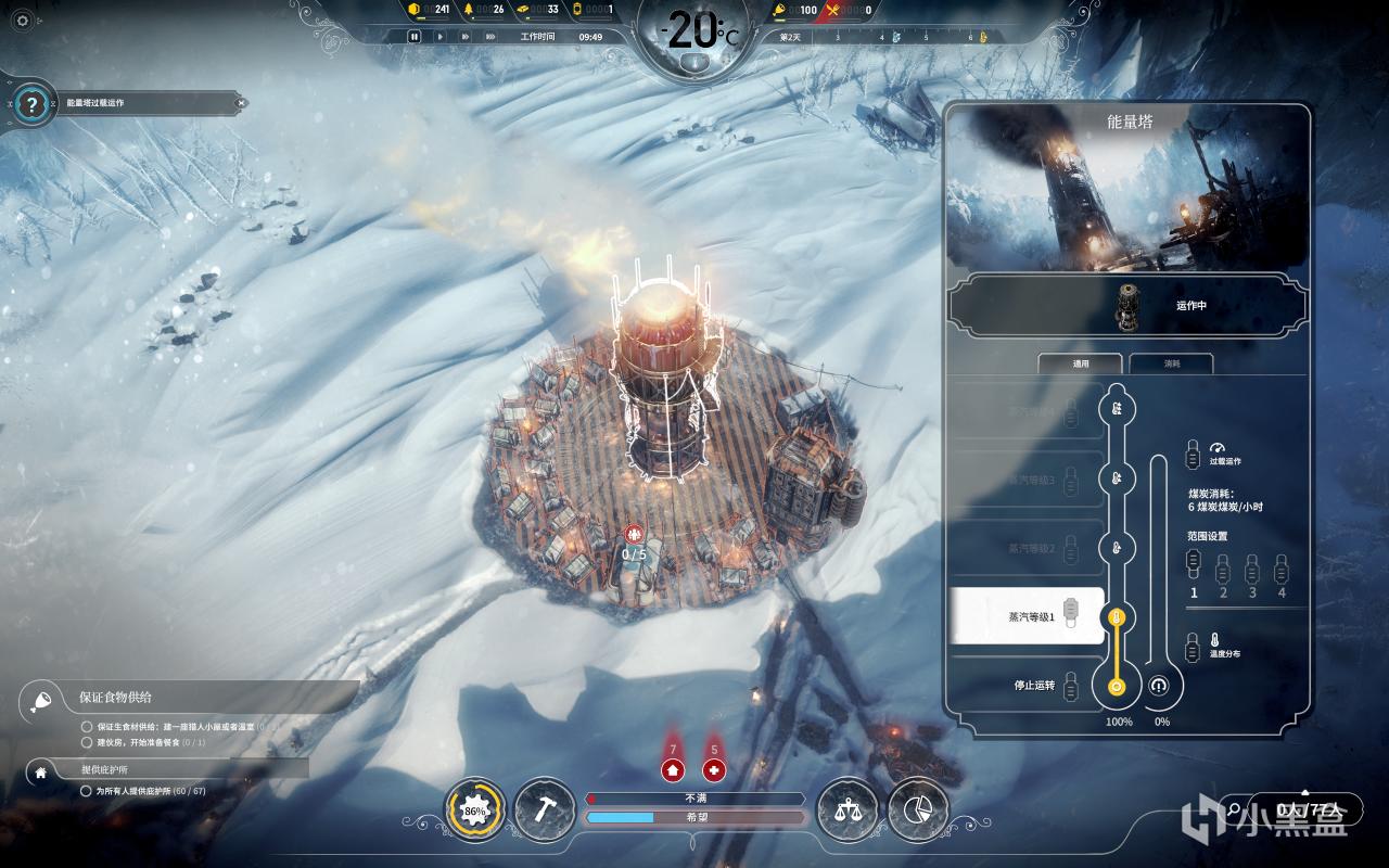 可以看到,现在开了一级能量热度后,帐篷的温度加持是,+1建筑保温,+1供热场