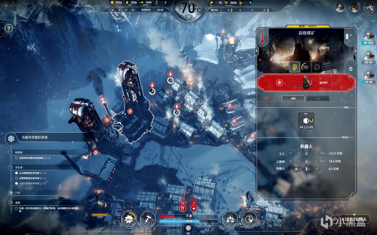 所以我的建议是,前期温室保命吃饱饭,中期合作加快食物储备,以免暴风雪没得吃