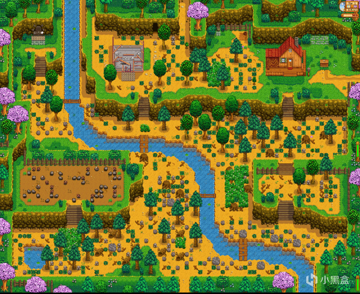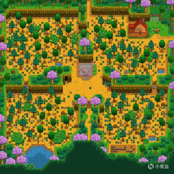 ②西側的區域每天都會生成8個大樹樁,砍伐後會掉落硬木,沒有遮擋的情況下第二天會重新生成。西側區域也會生成對應季節的可採集物品