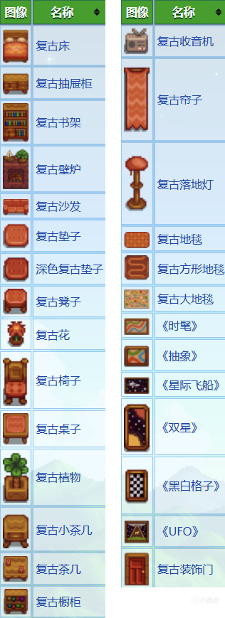②除了一些零零散散需要購買或者特殊獲取的傢俱,還有一些固定的傢俱目錄提供裝飾品。