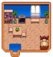 ③聯機小屋的內部與主農舍的內部相同。玩家可以睡在不屬於自己的小屋裏,但只有小屋的所有者可以移動小屋的牀。