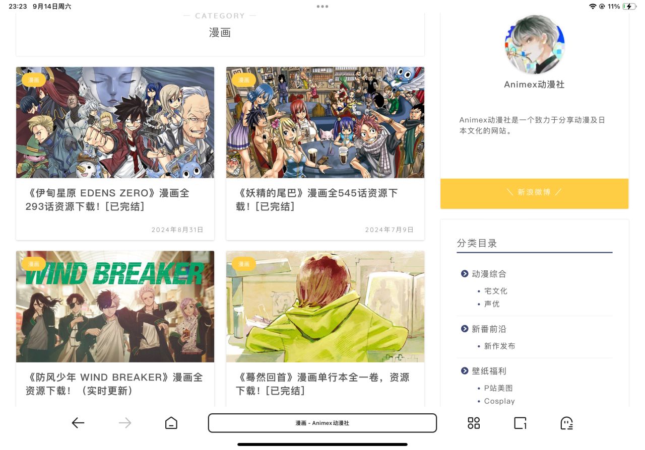 这是个重量级选手!里面资源非常丰富,动漫,轻小说,漫画不等。单是漫画资源就够你看个够了,基本上作者想看的里面都能搜到