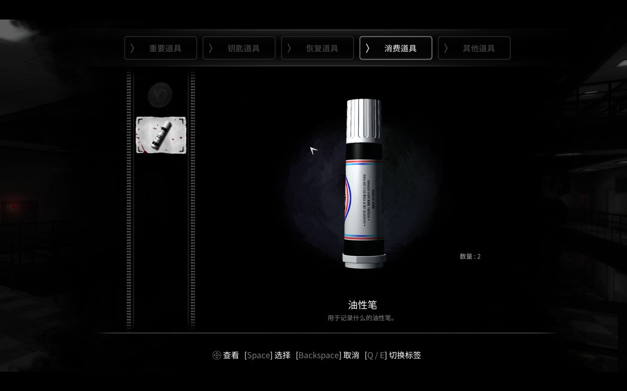 對玩家很不友好的存檔機制,你得有它才能手動存檔。我一開始很快就用掉了油性筆,以至於一步步都小心翼翼怕自己遇見怪談掛了在觸發劇情的時候是會自動存檔的,存檔標誌是左下角出現一個紅色W