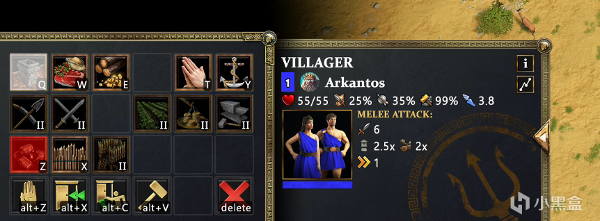 遊戲裏幾乎就是帝國時代那味兒,採集、種田、殺鹿、牽羊,連工人建造面板的佈局都沒有變,滿滿的回憶和情懷。