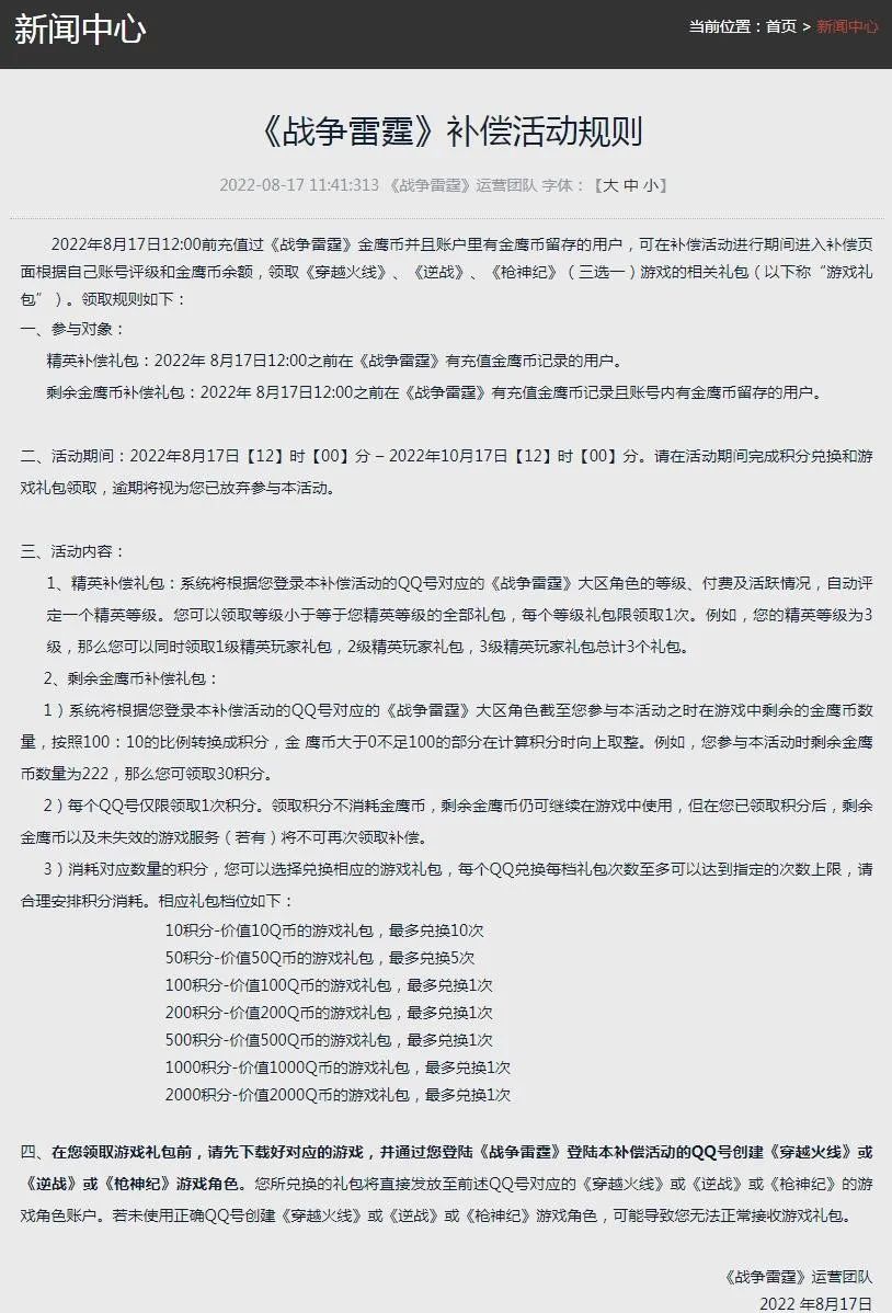 有趣的是,這次停服完美展現了什麼叫做肥水不流外人田。所有補償,玩家都必須在《穿越火線》、《逆戰》和《槍神紀》這三個遊戲的其中一個創建角色,而補償也只是對應的遊戲禮包,連Q幣都沒有。