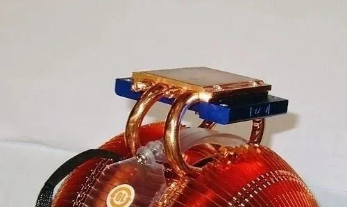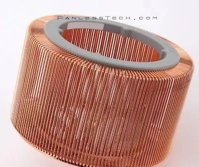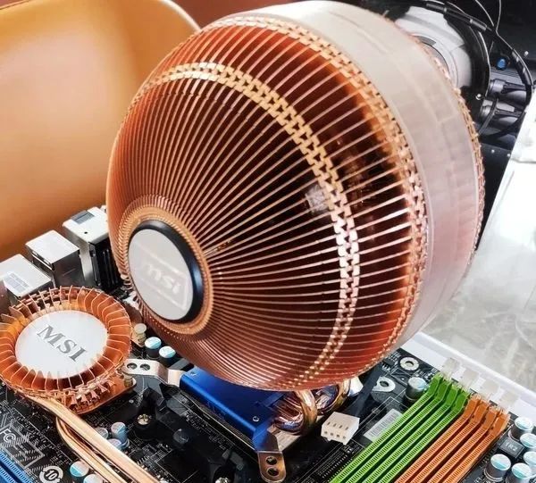 最初版本的“绞肉机”由6根6mm热管制成,主体为并不是上图的下压式,而为类似于塔式散热器的横置设计。