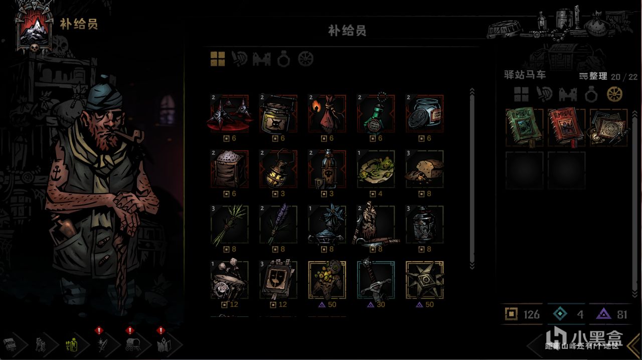 探索过程中可以获得遗物和珍宝(货币),可以在补给员处可以购买战斗物品、饰品、旅馆物品、马车饰品