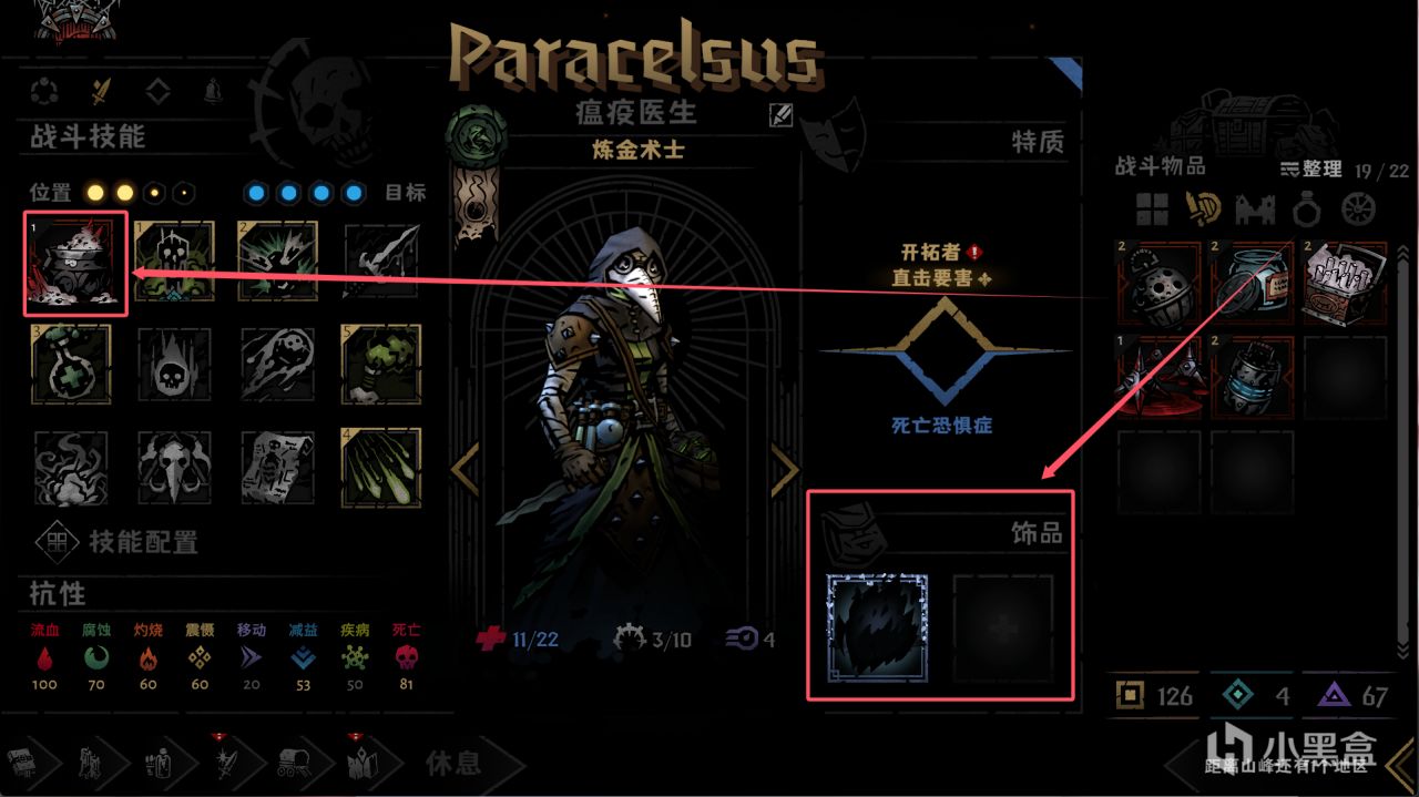 战斗物品和饰品可以在战斗中获得和旅馆购买,只能在旅馆中使用,直接拖动到英雄身上使用