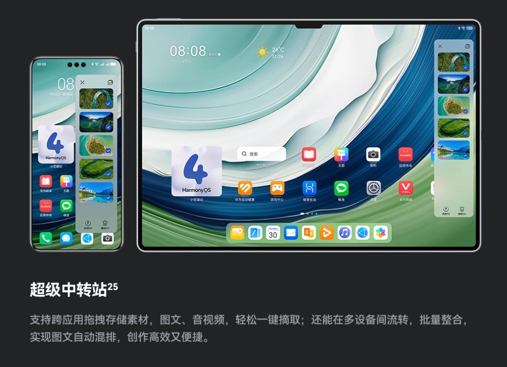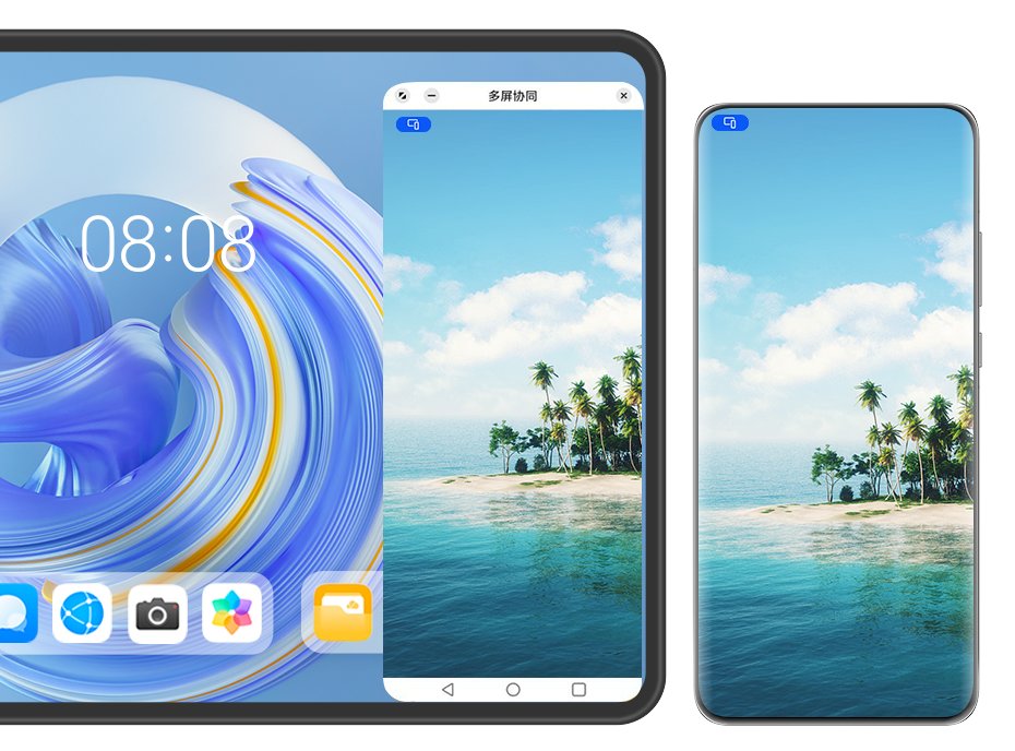可以将手机屏幕投屏到平板/电脑上,平板可以镜像或者拓展显示电脑屏幕,设备间可以拖拽文件传输。
