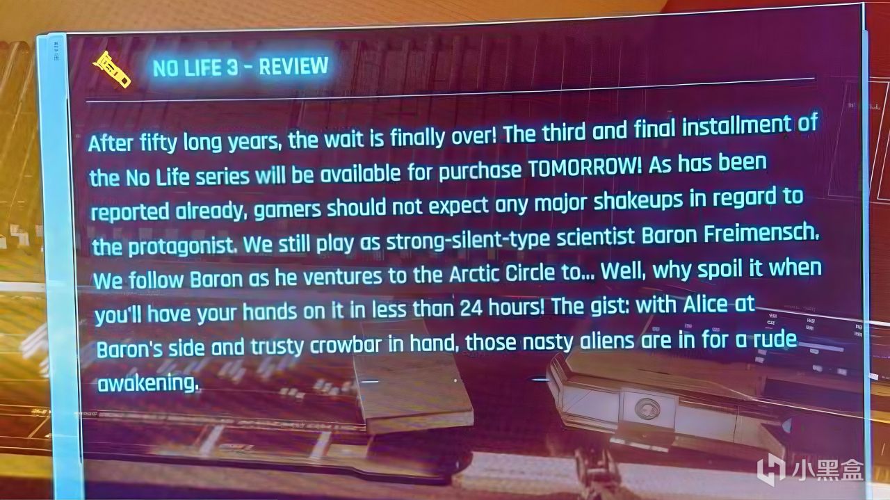 遊戲裏有一則信息,向玩家介紹了一款名爲“No Life 3”的遊戲:“經過 50 年的努力,玩家的等待終於結束了!No Life 系列的第三部也就是最後一部將於明日發售!”這裏其實是 波蘭蠢驢 的員工在調侃 V 社的半條命系列遲遲不出第三部。