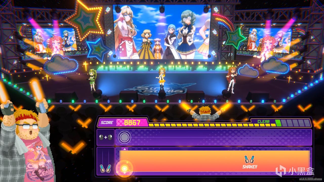 这里就塞了蕾亚斯酱的音游玩法,游戏背景还是要逃离粉丝的狂热。