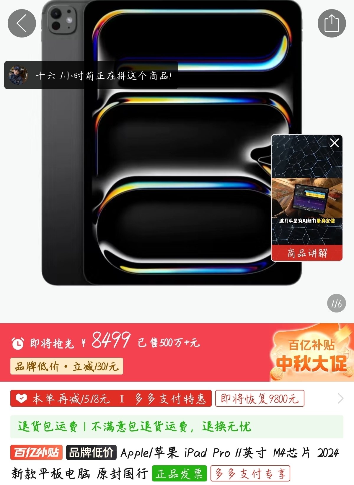 优点:地球上最强的平板,最强的平板处理器M4,非常薄,双层OLED屏幕亮度更高,最好的扬声器,纳米纹理版本可以抗反光