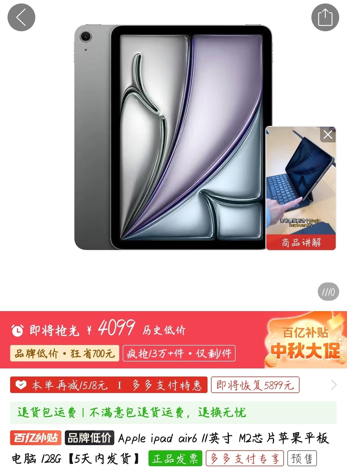 vivo Pad Air/iQOO Pad Air(两个机器一样,哪个便宜买哪个)
