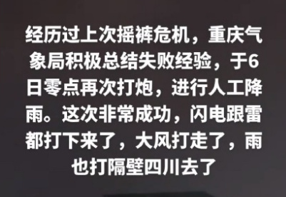 不過,對於人工降雨失敗引來大風的“指控”,重慶氣象局表示“冤枉”。