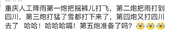 近日,四川突降大雨,網友調侃是隔壁的重慶人工降雨打偏所致。