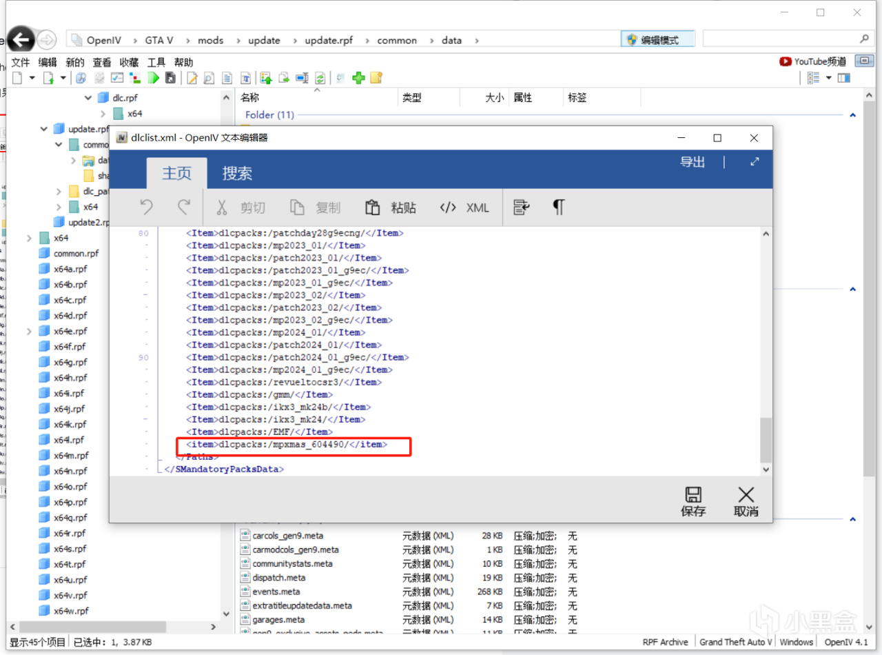 注意:右边的软件是openiv,有小伙伴不会安装的可以看我前期作品!