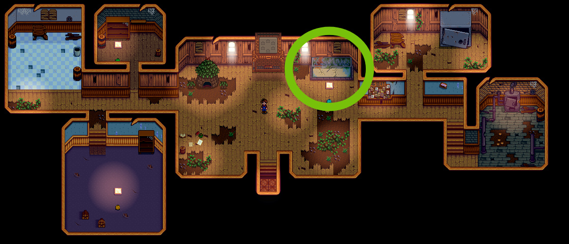 然后是“湖鱼收集包”,鲟鱼在夏季/冬季的早上6.—晚上7.在山区湖泊出没(任意天气),山区湖泊就在罗宾商店的那片区域,那片区域所包含的水域都是山区湖泊,大嘴鲈鱼、鲤鱼、大头鱼这三种鱼跟我春季流程走的玩家肯定是都捐了的,没捐的玩家在山区湖泊也能钓到,钓鲟鱼的同时可以顺带把另外三种鱼补齐