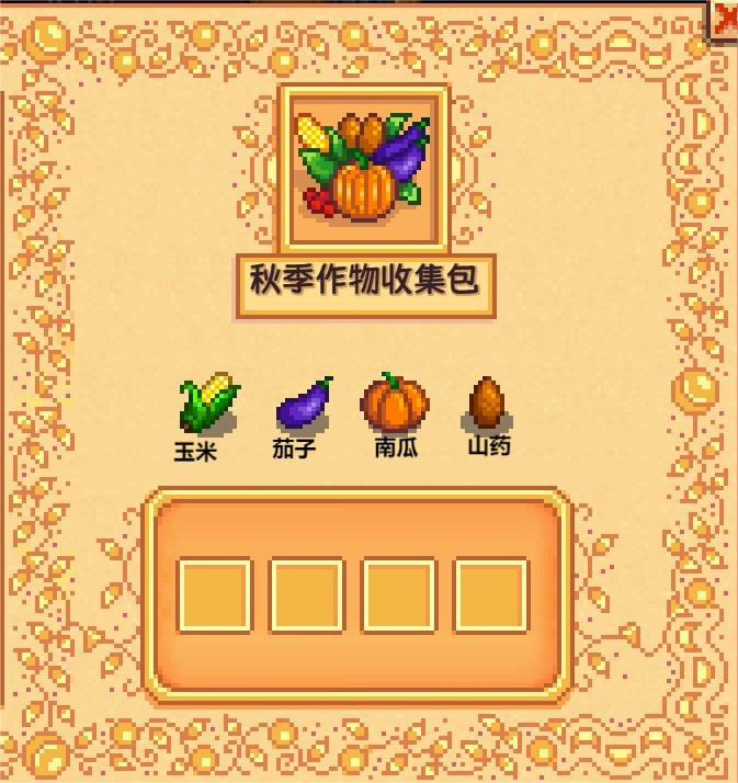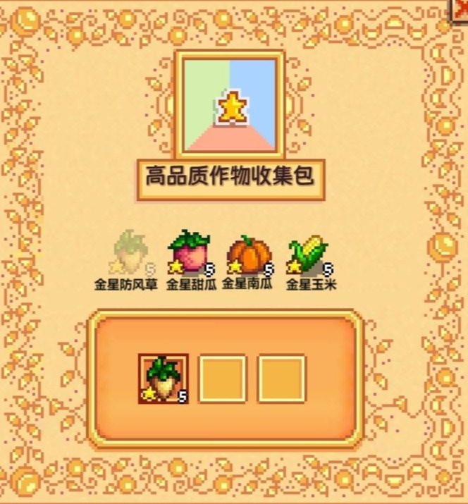 下面这个“秋季作物收集包”我也提一下,因为玉米是两季作物,所以说如果你夏季就已经开始追金星玉米了,那你这里也可以提交一下
