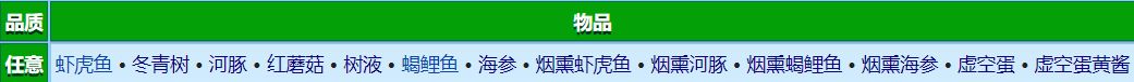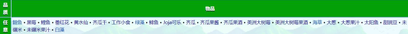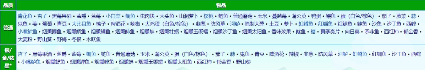 如果你加入了以下物品之一,那么将会得到“最好的评价”,你与村民之间的好感度会增加120点