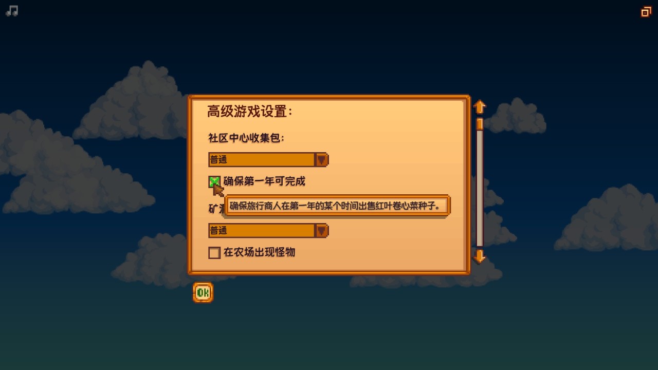 这个选项会保证让红叶卷心菜种子在第一年出现在猪车中,猪车是个商店,它会在每周五和周日出现在煤矿森林区域的西北侧,也就是秘密森林入口处的附近,营业时间是早上6.—晚上8.