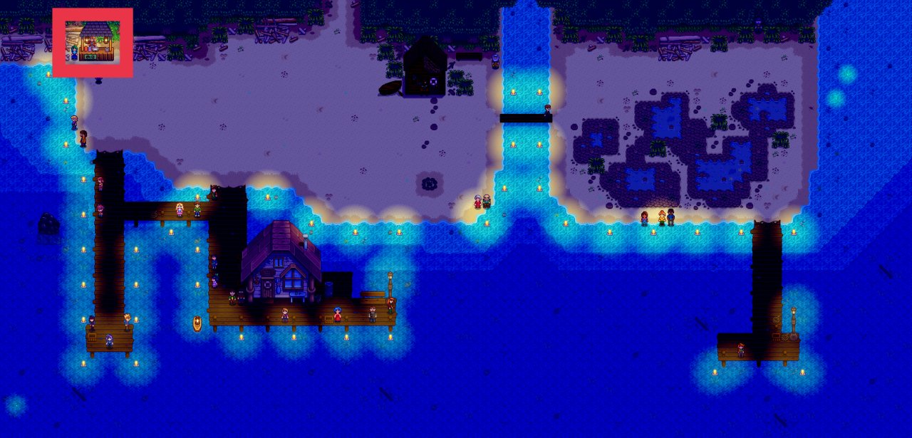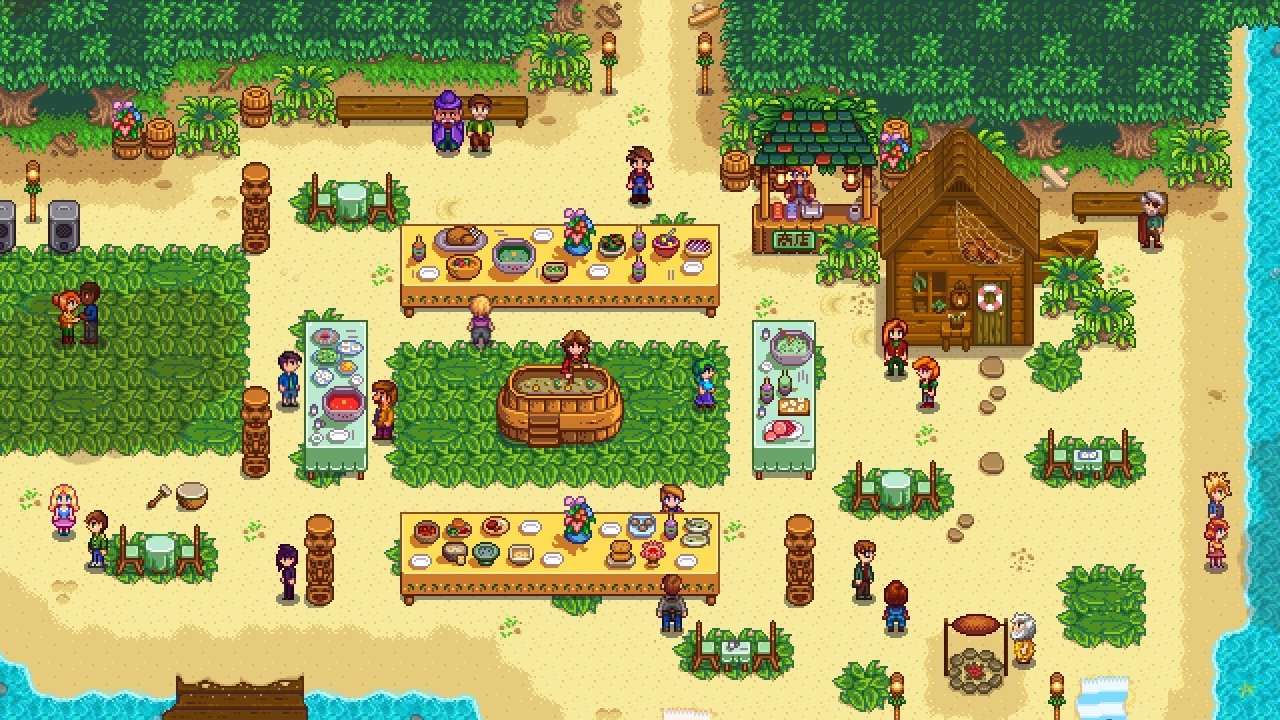 这个节日的主要任务就是给汤加料,也就是下图中央的那锅汤,我们走过去右键点击这锅汤就能选择我们背包中的个别物品加入进去,只能选择一样物品加入,我们加完料以后去和刘易斯互动,州长就会来品尝这锅汤并作出评价,等州长评价完以后该节日就会自动结束,你会自动回到家门口,时间是晚上10.