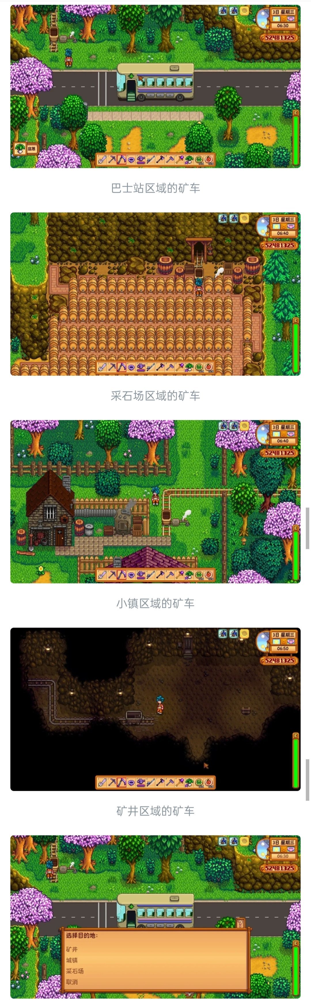 这个板块的收集包都相对简单,所需物品都能在矿井获取,下矿多的话基本都能捐,我这就不过多介绍了,完成这个板块的所有收集包后,当天晚上睡觉时会触发矿车修复的动画,第二天你就能使用矿车了,游戏里一共有四处矿车可供你使用,分别在巴士站区域、采石场区域、小镇区域、矿井区域,这些地方的矿车都是互通的,所以完成这个收集包后会让你赶路方便一点