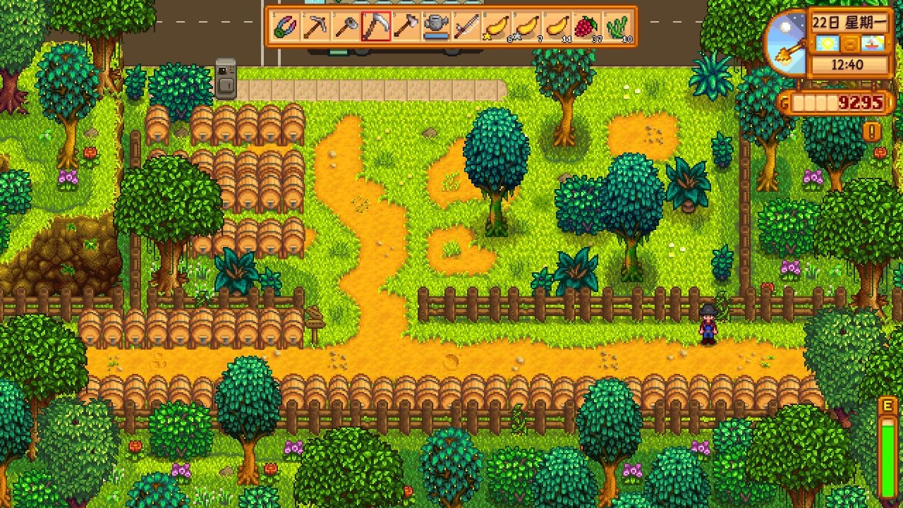 下面我拿自己目前存档的进度举例子,我春季结束时耕种等级是七级,七级升到八级需要2100点经验值,啤酒花的成熟时间为11天,之后一天一收,我夏1日种的啤酒花,也就是夏12日收第一次,之后每天都能收一次,收一株啤酒花所得的耕种经验值为6点,我种了118株,也就是收一次可以得到708的耕种经验值,收三次即可升级,夏15日就能达到耕种八级解锁小桶配方(虽然是夏14日达到耕种八级,但是你需要睡一觉后,也就是隔天才能解锁制作配方),之后再来看橡树树脂的数量,这边我是春22日放置了23个树液采集器,七天产出一次,那就是在夏1日、夏8日、夏15日分别产出一次,共三次,总共69个橡树树脂,我就以夏15日当天造69个小桶为目标去收集其余材料,也就是在夏15日前,我要收集齐木材×2070➕铜锭×69➕铁锭×69(14天的时间很宽裕,很容易就能集齐,好运天到矿井21/31层反复上下刷铜锭,41/61层刷铁锭,根据自己解锁的层数去选择,我个人觉得31层和41层是最好刷的),这样到了夏15日时我就能直接制造69个小桶开始酿酒,之后每七天收一次橡树树脂,也就是每七天多造23个小桶即可,大家可以根据我这个思路,再结合自己存档目前进度的情况去计算,这样可以最快赚到钱,因为具体的经验值是看不到的,所以这个计算是大约估算,你可能会提前升级,比如我这里计算的是夏15日解锁小桶配方,但实际我夏14日就解锁了,但我是等到隔天再收一次橡树树脂后才开始制作小桶,大家最好在计算出来的时间上减去一两天,提前收集好,之后的时间就可以自由安排了,可以去做一下社区献祭,钓鱼砍树,造避雷针之类的