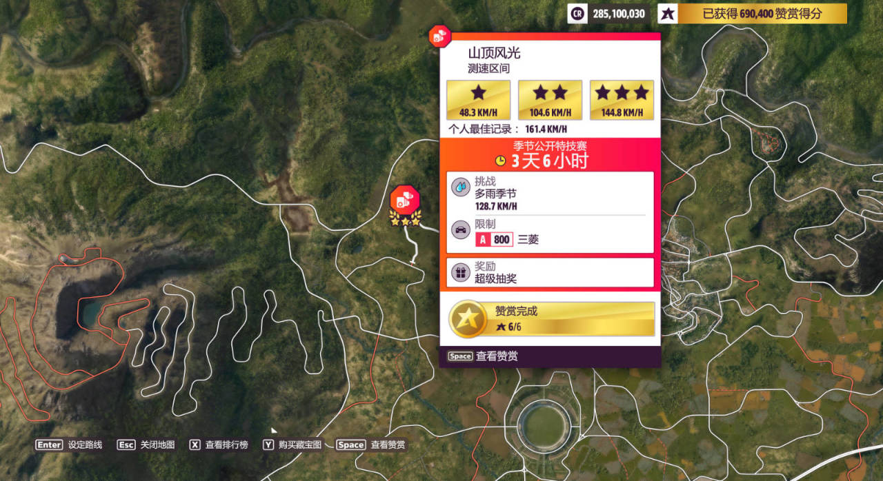 測速區間:山頂風光,完成獎勵爲超級抽獎。(從右側入口進,過彎注意不要失速太多,越野胎操控上還是沒問題的)