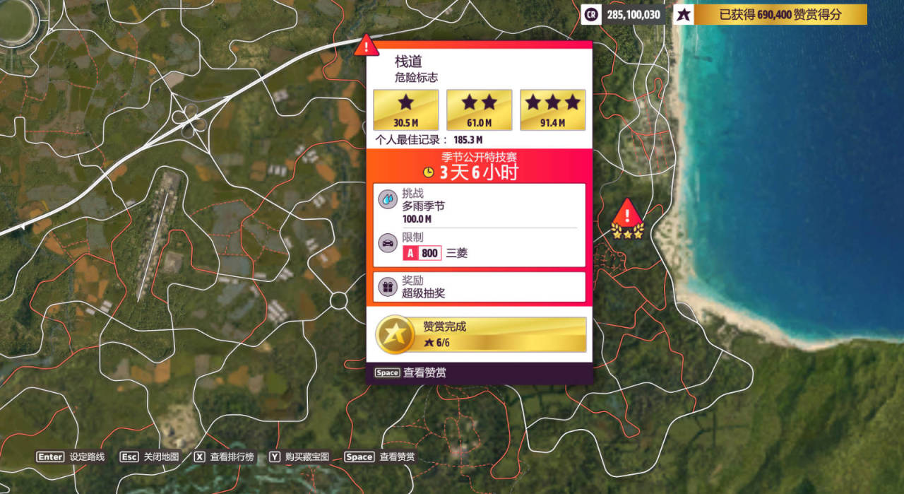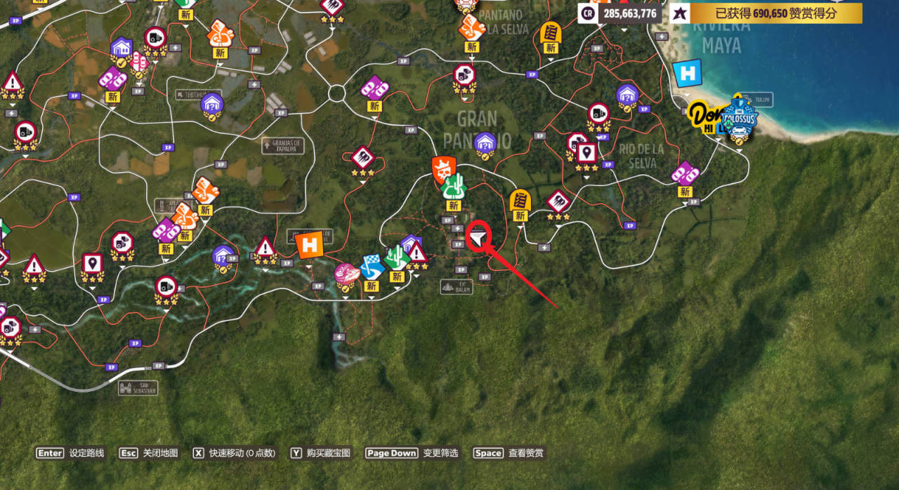 駕駛任意電車(這周蛇頭獎勵的捷豹就是電車)在測速區間累積獲得6星等即可觸發寶箱大致範圍,寶箱具體位置如圖,完成獎勵爲100馬拉松點數