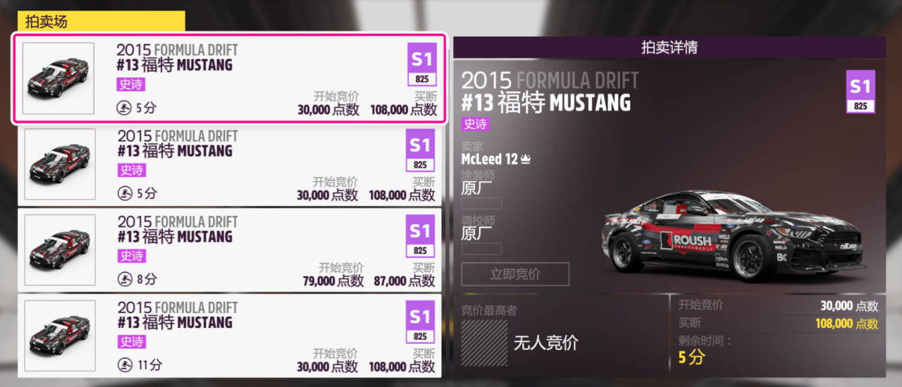 獎勵車輛爲:2015款FORMULA DRIFT #13 福特 MUSTANG