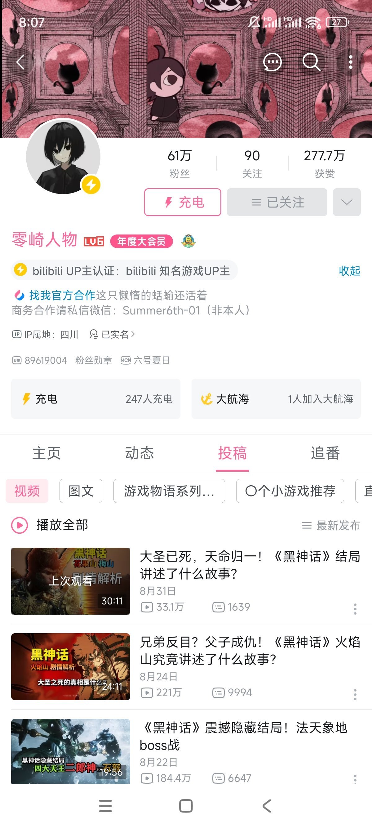 博偉君,正宗老北京味專門配音各種離奇抽象恐怖遊戲。知名恐怖遊戲《寂靜嶺》、《心靈殺手》等系列博偉君都做過細緻入微的解說,每期視頻時長都在一小時左右,不僅時長有保障,博偉哥也在很多方面照顧觀衆的體驗。