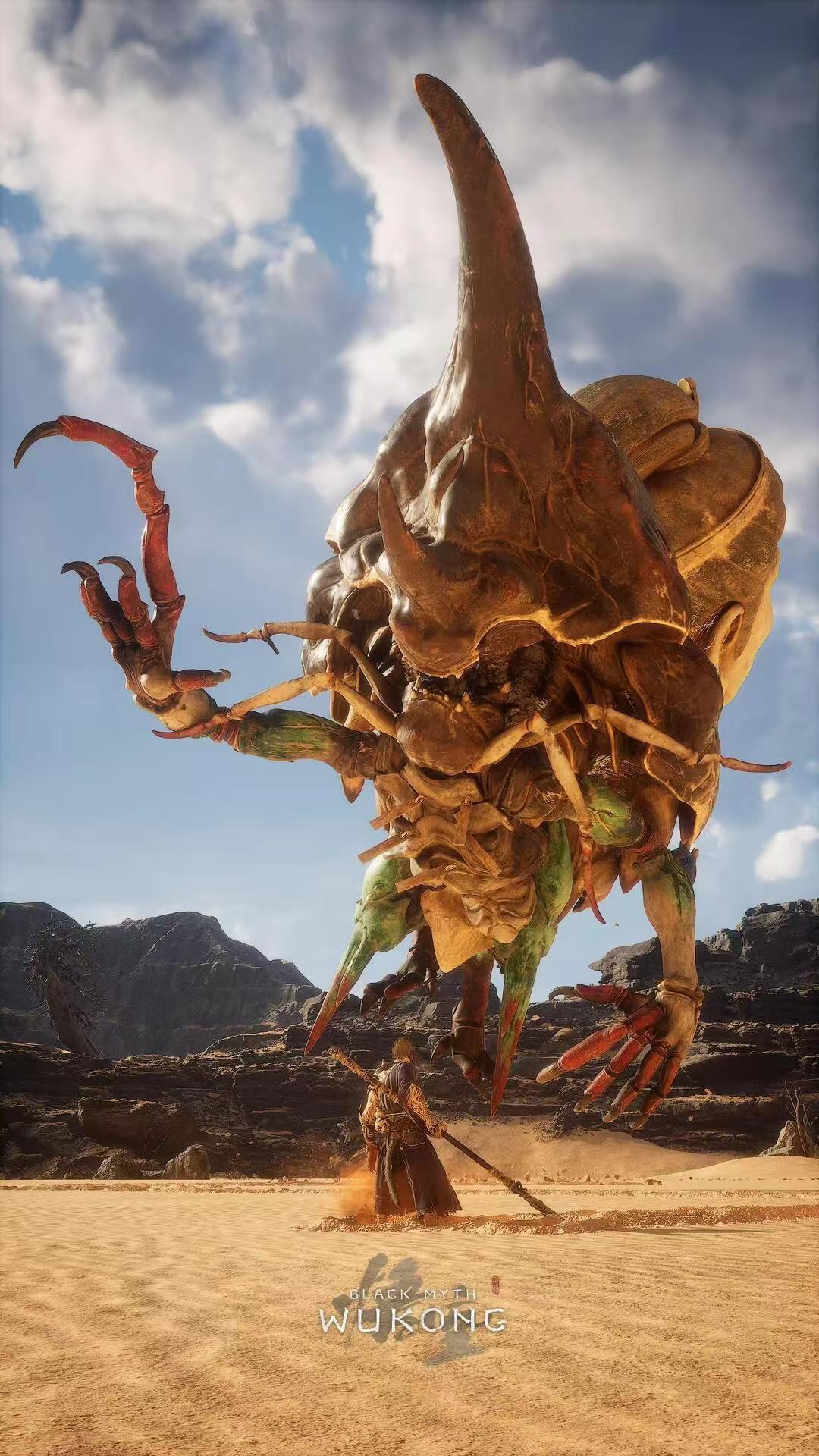 在他的帶領下,天命人來到了黃風嶺的隱藏地區,漫天黃沙的古國遺址。豬大爺緩緩講述起以前的故事,原來這裏的沙海曾經蟄伏着一隻上古巨蟲,平日裏沉睡地底無蹤可循,而巨蟲身上的佛力卻被下界的黃毛貂鼠看中,於是施法鎮住巨蟲收爲己用。沙國大王因此將鼠妖奉爲了護國神聖,這正是對應之前斯哈哩國”敬鼠令“相關的劇情。談話之間,一股力量傳入天命人的身上,他穿越到了當年黃蜂大王大戰巨蟲的戰場,也就是西遊之前的時間線。深入探險,我們再次遇到了“虎先鋒”,也就是之前戰鬥的虎先鋒的老爹。打敗他之後,他請求天命人助他大王降妖,聲稱洞中還有兩個未成年的孩子,因此不願在此送了性命,指的正是虎兄和虎弟。