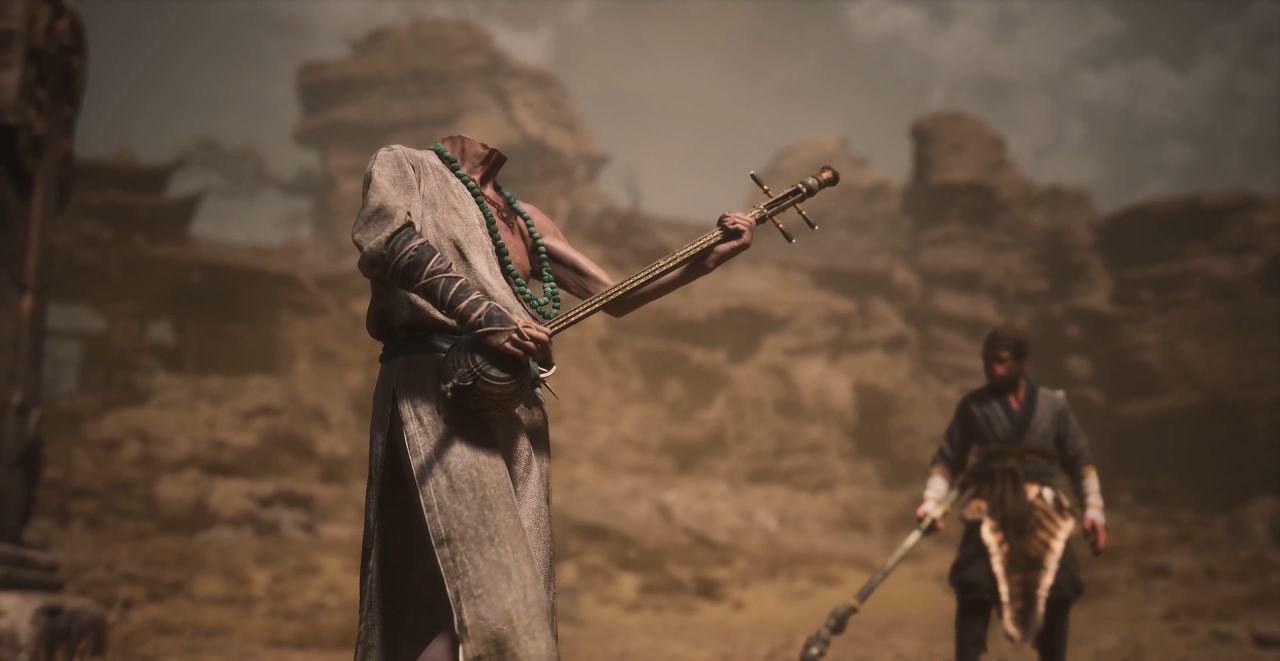 一位無頭僧人正在吹拉彈唱,介紹着這個淒涼之地發生的故事。