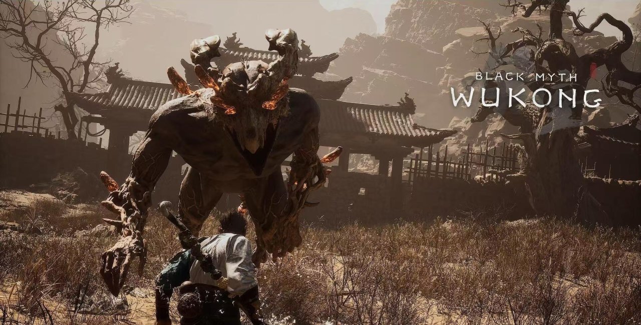 推開一扇門,天命人見到了沙國王和他的兒子沙二郎,他們正商討着要苟到“黃風大王”離開谷底。談話間他們注意到了天命人的到來,一場大戰在所難免。沙二郎偏憨動作緩慢,使大錘砸擊,而沙國王則非常靈敏,上躥下跳,丟石子遠程攻擊。天命人以一敵二,利用走位甚至還能讓他們互相殘殺。這裏根據擊敗的順序不同會有分支劇情,沙二郎的攻擊大開大合非常好打,先打倒沙二郎,沙國王就會逃走;先打死沙國王的話,殺二郎會進入狂暴模式,天命人最終還是戰勝了這對父子。