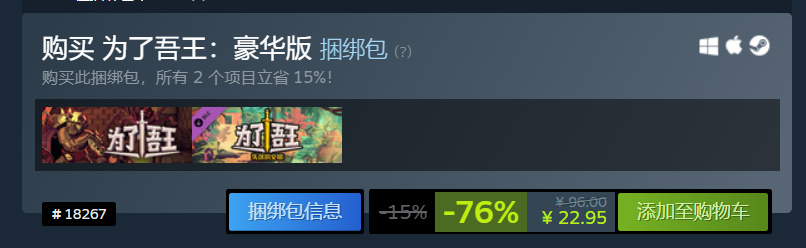 遊戲簡介:《爲了吾王》是一款結合桌遊和 roguelike 類型元素的跨界策略 RPG 遊戲。可以單機進行單人遊戲或者在線多人合作。培養你的角色,極致發揮你的戰術和策略。遊戲支持中文。