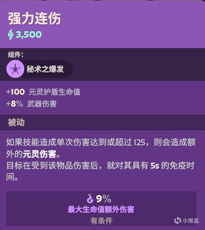 她的1技能精华炸弹,消耗一部分生命值,扔出一个炸弹,满级在爆炸后还会在地面上留下一个持续造成伤害的区域持续6秒,是当前版本的核心技能。而她的所有技能消耗的生命值都会被视为对自己造成的元灵伤害,同样会享受到元灵伤害减免。所以在游戏中期,能够提供45%元灵伤害减免的高级元灵护盾会是核心装备之一。在优先升级满1技能的同时,购买的所有能buff技能的装备,全部选择1技能,团战时安心做一个丢丢怪,等地上的区域消失的同时,第二个炸弹也冷却好了(额外冷却、范围、以及秘术之余波等)。