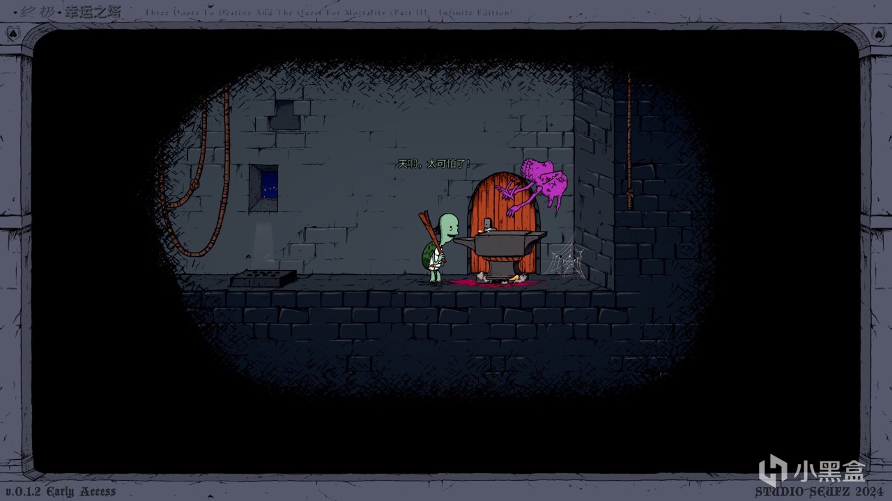 遊戲的操作非常簡單,就是AD左右行走加跳躍、搭配E鍵裝備、F鍵左右交互,加上鼠標左鍵攻擊、右鍵拾取和中鍵投擲,沒了!整個操作就是這麼簡單!但就是這麼簡單的操作卻構築成了這讓人慾罷不能的崩心態遊戲!別說什麼你心態無比強大的話,再強大也就是多堅持幾層塔和多幾次莫名其妙死亡的功夫而已,反正早晚都得崩!