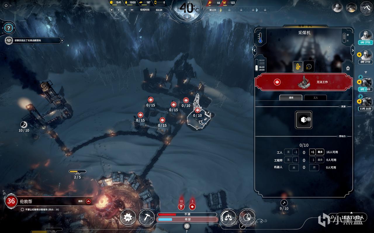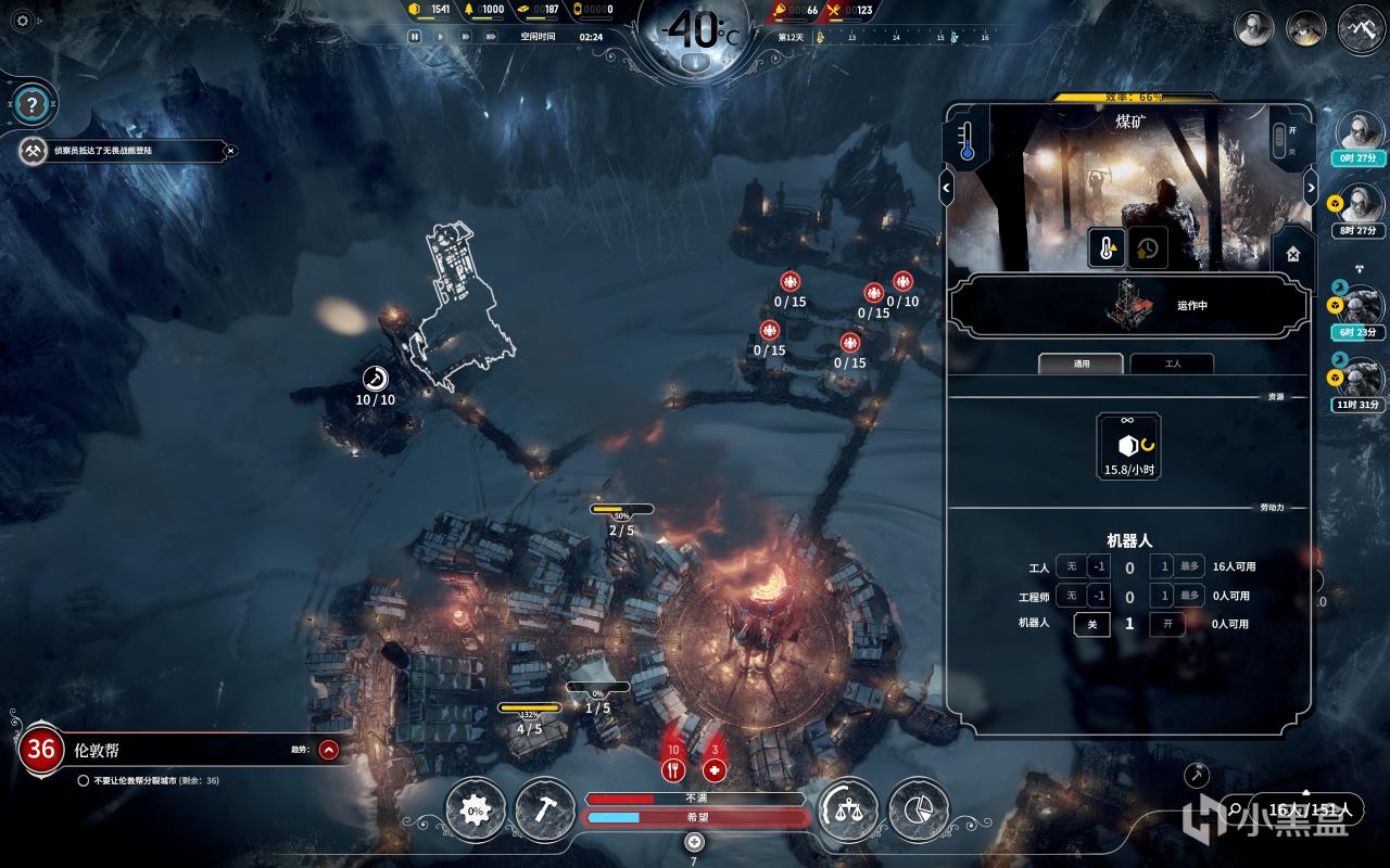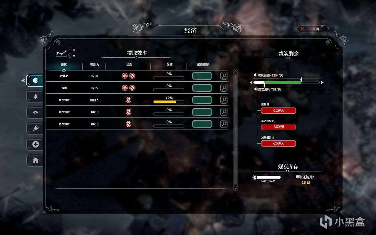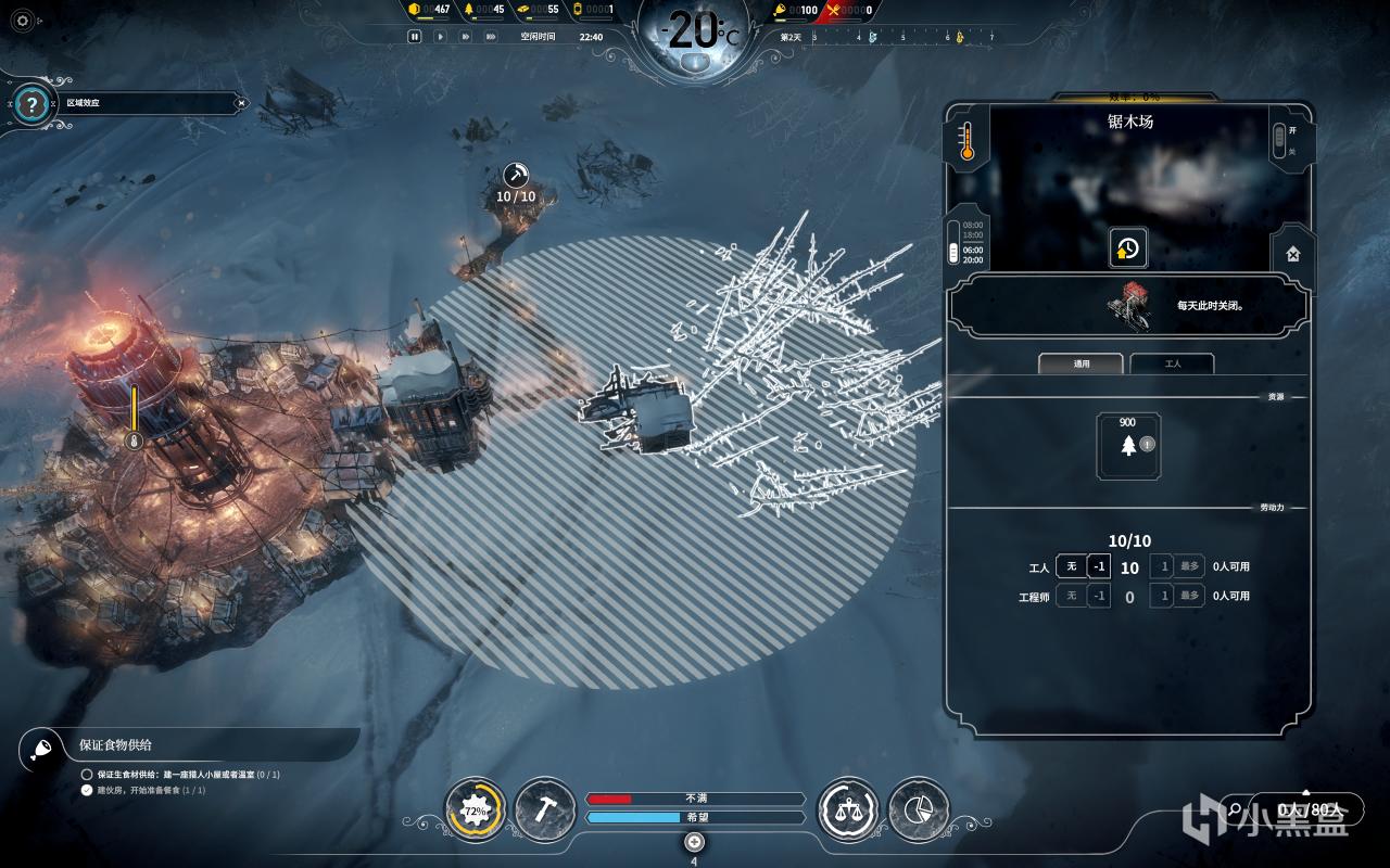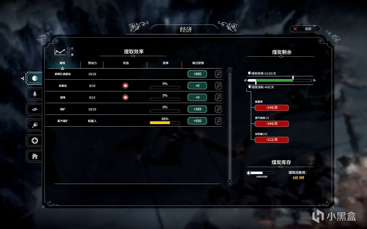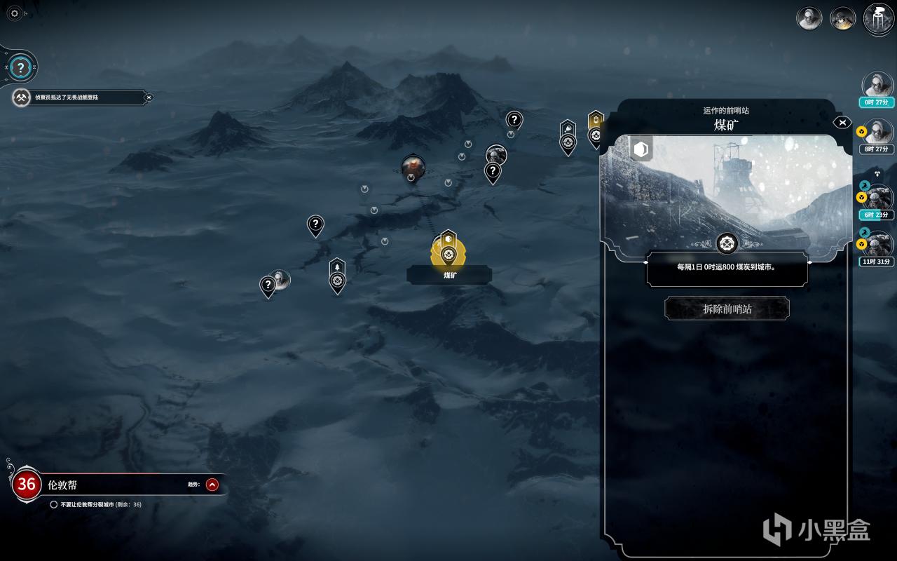 首先前哨站這邊你可以在煤礦建立一個,每天800煤炭,保證你別凍死